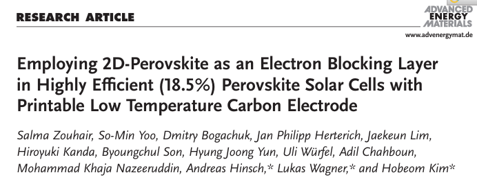 S. Zouhair†, S.-M. Yoo†, D. Bogachuk, J. P. Herterich, J. Lim, H. Kanda, B. Son, H. J. Yun, U. Würfel, A. Chahboun, M. K. Nazeeruddin, A. Hinsch*, L. Wagner*, H. Kim*