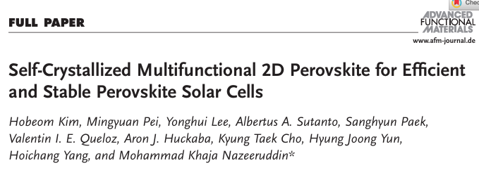 H. Kim, M. Pei, Y. Lee, A. A. Sutanto, S. Paek, V. I. E. Queloz, A. J. Huckaba, K. T. Cho, H. J. Yun, H. Yang, and M. K. Nazeeruddin*