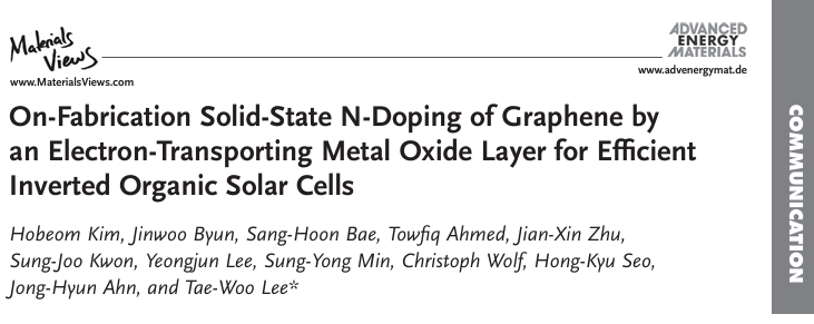 On-fabrication solid-state N-doping of graphene by an electron transporting metal oxide layer for efficient inverted organic solar cells